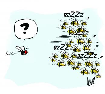 ELLE A brusquement quitté sa ruche et tourne en rond depuis quelques heures autour d’une source lumineuse, totalement désorientée. Qu’est-ce qui a piqué cette abeille pour qu’elle adopte un tel comportement ? Le fait est que de nombreuses colonies d’hyménoptères, pourtant modèles d’organisation et de socialisation, semblent aujourd’hui bel et bien menacées par un inoffensif diptère : apocephalus boréalis. Cette petite mouche dépourvue de dard vient pondre sur l’abdomen des abeilles. Mais c’est en réalité un parasite de ces larves de mouche qui serait la cause du phénomène appelé en anglais « colony collapse disorder » ou CCD. Cette contamination, apparue en 2006, a pratiquement décimé les populations d’abeilles domestiques aux États-Unis. Les chercheurs américains de l’université d’État de San Francisco qui s’intéressent au phénomène observent que les abeilles infectées « ne peuvent plus tenir sur leurs pattes qu’elles ne cessent d’étendre pour les dégourdir avant de tomber, agissant comme des zombies ». Voulant pousser plus loin leurs investigations les entomologistes ont mené des analyses génétiques dans les ruches infestées. Ces dernières ont montré que les abeilles et les mouches étaient aussi souvent infectées par un virus qui déforme les ailes et par le champignon microscopique Nosema ceranae, d’origine asiatique, susceptible de provoquer des infections fongiques. Deux causes potentielles du « colony collapse disorder » ont conclu les scientifiques.