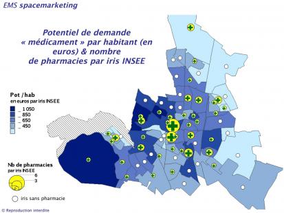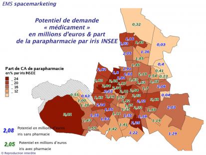 Potentiel de chiffre d’affaires par iris et poids théorique de la parapharmacie