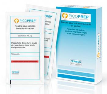 Moins d’eau avec Picoprep dont les sachets ne nécessitent qu’un petit volume de solution pour une préparation à la coloscopie (Ferring).