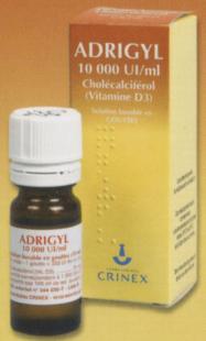 La vitamine D fait beaucoup parler d’elle en 2011 et Adrigyl 10 000 UI/ml rajoute quelques gouttes de cholécalciférol D3. Il suffit de les verser dans une petite cuillère et de les prendre pures ou mélangées dans un aliment liquide ou semi-liquide (Crinex).