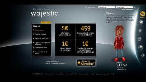 Lancé à la fin de l’année dernière, Wajestic est un portail où l’on peut acheter sur plus de 500 sites marchands, dans tous les domaines, et qui, en créant une communauté grâce à un système de parrainage en chaîne, applique en quelque sorte le principe de la chaîne de l’amitié au shopping sur Internet. Il suffit d’être parrainé pour être membre et chaque membre est rémunéré 1 euro par tranche de 30 euros d’achat, mais aussi sur les achats des amis qu’il a parrainés – jusqu’à 10 –, ainsi que les amis des amis, etc., jusqu’à cinq niveaux au maximum. Selon son créateur, chaque membre pourrait ainsi développer une communauté de 3 905 membres et gagner 1 euro à chaque fois que l’un d’eux effectue un achat en passant par Wajestic. À suivre.