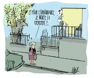 Un généraliste de Montbéliard, dans le Doubs, a décidé de les appliquer à la lettre. Équipé d'un masque FFP2, il organise ses consultations depuis… son balcon. Il faut dire que son cabinet, situé au rez-de-chaussée, rend la manœuvre plus confortable. « Je tiens à vivre ! », proclame ce médecin, encore en activité à 76 ans, et par ailleurs asthmatique.