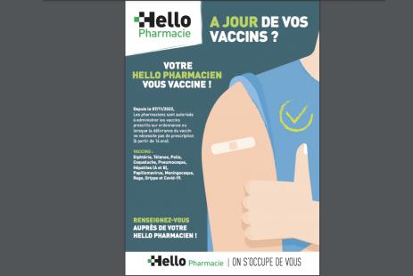 Bien que le décret concernant la prescription des vaccins par les pharmaciens ne soit pas encore paru, le groupement Hello Pharmacie se saisit de l'opportunité de l'extension des compétences vaccinales des pharmaciens pour communiquer sur les vaccinations et, tout particulièrement à l'approche de l'été, sur les vaccinations du voyageur (fièvre jaune, encéphalite à tiques…). Une campagne de communication informera les patients à grand renfort d'affiches, de leaflets et de boucles vidéos dans l'espace de vente.