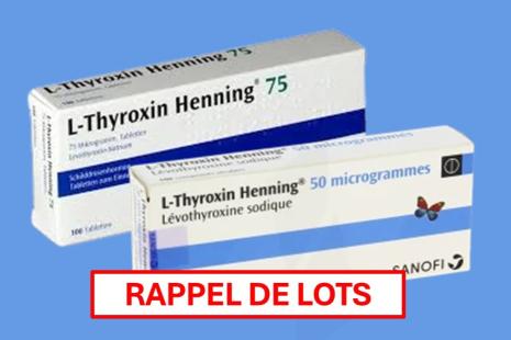 Quatre lots de L-Thyroxin Henning (lévothyroxine) 50 µg et 75 µg comprimé sécable sont rappelés en raison d’un risque de sous-dosage en principe actif avant leur péremption. Ce même jour, un lot de Gelsemium Complexe n° 70, solution buvable en gouttes, fait lui aussi l’objet d’un rappel, cette fois à cause d’un problème d’étiquetage.