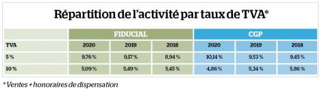Grâce notamment aux honoraires et à un rattrapage des prescriptions au deuxième semestre, le médicament remboursable limite son érosion et maintient sa part (ventes plus honoraires) à 74,56 % pour Fiducial et 73,46 % pour CGP (75,40 % et 73,30 % en 2019) au sein d'un chiffre d’affaires moyen qui oscille entre 1,648 et 1,935 million d’euros. Les produits de TVA à 5,5 %, tels les masques et les gels, « des produits qui se vendaient peu ou pas auparavant », comme le relève Philippe Becker, expert-comptable chez Fiducial, sauvent également la mise en accentuant leur poids au sein de l’activité. Cette catégorie représente désormais entre 9,76 % et 10,14 % du chiffre d’affaires, contre 9,17 % et 9,53 % il y a encore un an. Même tendance pour le segment des produits de TVA à 20 % qui augmentent leur part à 10,59 % du chiffre d’affaires des pharmacies suivies par Fiducial (10,35 % en 2019). Il s'agit sans doute d'un effet de la fermeture de certains commerces.