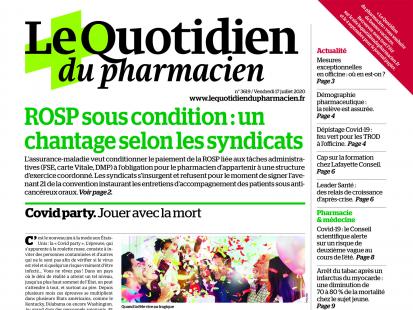 JUILLET. Le tribunal administratif de Montreuil reconnaît pour la première fois la responsabilité de l'État dans l'affaire de la Dépakine. Nicolas Revel, ex-DG de la CNAM, est nommé directeur de cabinet du nouveau Premier ministre, Jean Castex. L'état d'urgence sanitaire prend fin le 10 juillet, certaines mesures exceptionnelles qui concernaient l'officine s'arrêtent, d'autres sont prolongées. Après de longues négociations, les TROD sérologiques pour le Covid-19 débarquent en pharmacie, suite à la publication d'un arrêté le 11 juillet au « Journal officiel ». L'assurance-maladie introduit dans l'avenant 21 une clause imposant aux pharmaciens d'appartenir à une structure d'exercice coordonné pour percevoir la ROSP liée à la réalisation de certaines tâches administratives, les syndicats refusent de signer le texte en l'état. 19 juillet : port du masque obligatoire dans tous les lieux clos. Signature le 29 juillet de l'avenant 21 qui permet aux officinaux d'effectuer les entretiens de suivi pour les patients traités par anticancéreux oraux.