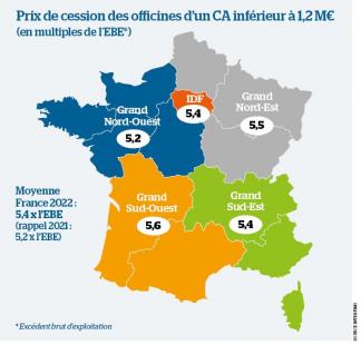 * Étude 2023 Prix de cession des officines en 2022. https://bit.ly/3ZX3SDN.
