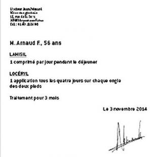 Le pharmacien précise aussi les règles d’utilisation de Locéryl : le traitement est poursuivi jusqu’à la régénération complète de l’ongle (environ 9 mois pour les pieds), la zone traitée préparée avant la première application (nettoyage, dégraissage, cf. RCP du médicament), la spatule nettoyée entre le traitement de chaque ongle, les limes à ongle ne sont pas utilisées pour limer des ongles sains, etc. Des règles sûrement contraignantes et probablement impossibles à suivre pour M. F… qui, seules, garantissent le succès du traitement.