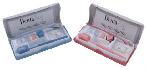 Composition. DentaPass Urgency : poudre, liquide et pâte dentaires, une paire de gants et des doigtiers en latex, compresses de gaze et rouleaux de coton salivaires, bloc papier pour mélanger, une cuillère doseuse, une spatule/miroir et une sonde/fouloir. DentaPass Kid : gel gingival pour nourrisson, un doigtier en silicone avec picots, doigtiers en latex, brosse à dents enfant, boîte à dents de lait avec cordon.