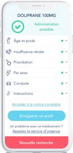 Le plus de la solution : elle permet de s’adapter à la situation de chaque patient (grossesse, insuffisance rénale, diabète etc…) grâce à la personnalisation de la recherche en fonction de son profil.