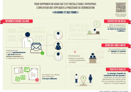 Ils sont sans appel : l’avantage disparaît définitivement. Aucun texte ne prévoit le maintien des avantages acquis. À l’inverse, si la dénonciation n’est pas faite dans les règles, l’usage perdure et les salariés doivent en bénéficier.