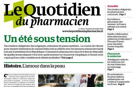 Le 1er juillet, les pharmaciens sont de nouveau autorisés à pratiquer les TROD angine, dont la mise en place avait été suspendue en mars 2020 pour cause de Covid-19. Le même jour, la très attendue réforme du dispositif d’accès précoce aux médicaments (ATU et RTU) entre en vigueur. Concernant l’épidémie en France, les mesures de distanciation sociales sont levées et les Français se relâchent sur les gestes barrières. Résultat, la prévalence du variant Delta, en l’espace d’un mois, passe de 20 % à 82,8 % des cas positifs. La pandémie repart de plus belle, dessinant déjà les courbes d’une quatrième vague. Devant la gravité de la situation, le gouvernement annonce le 12 juillet la vaccination obligatoire des soignants, l’extension du passe sanitaire à l’entrée de la majorité des lieux publics et le prolongement de l’état d’urgence sanitaire jusqu’au 15 novembre 2021. Toutefois, devant le coût économique de la lutte contre la maladie, l’État annonce la fin programmée de la prise en charge systématique des tests de dépistage du Covid-19 pour le 15 octobre.