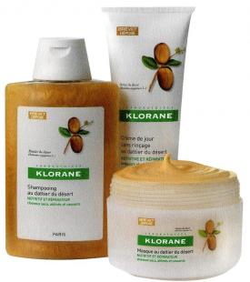 Composition. Extrait breveté d’amande du dattier du désert avec la partie lipophile contenant les beurres et les huiles, mais aussi la partie hydrophile riche en acides aminés essentiels, en protéines et en polysaccharides, le tout associé à un hydrolysat de protéines de blé, véritable kératine végétale.