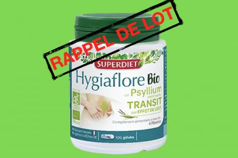 En raison de la présence d’oxyde d’éthylène détectée dans des gélules Hygiaflore psyllium Bio transit, les Laboratoires Super Diet procèdent à un rappel de lot sur ce complément alimentaire à base de quatre plantes. Il s’agit du lot N° 70052 EAN : 3428881118206 (date limite d'utilisation optimale : 12/2022).