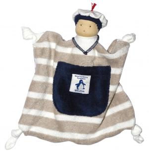 IL ÉTAIT UNE FOIS des doudous marins nés sur les bords du Nil à Sekem, et cousus avec amour par les mains expertes des femmes égyptiennes à leur domicile. Avec leur maillot rayé en coton bio issu du commerce équitable, et leur « bachit » (bonnet) vissé sur la tête, ces moussaillons mettent le cap sur la France, leur port d’attache. Ils sont alors confiés à un ESAT (établissement et service d’aide au travail), qui emploie des personnes handicapées, pour être conditionnés individuellement, et c’est un équipage de 100 000 doudous qui monte sur le pont. Première escale le 15 mars 2010, dans les pharmacies d’officine où ils espèrent trouver un accueil chaleureux et généreux. Cette histoire en forme de conte est une réalité née de la rencontre, en septembre 2009, entre Maud Fontenoy et les laboratoires Weleda. La célèbre navigatrice œuvre, via sa Fondation, pour la sauvegarde des océans et de la biodiversité marine en menant des actions pédagogiques auprès des enfants. De leur côté, les laboratoires Weleda ont toujours été soucieux du respect de l’environnement par la mise en œuvre de projets de cultures en biodynamie et de protection des espèces. Fort ces valeurs communes, un projet de partenariat s’est développé, chacun apportant ses compétences et ses ressources pour sensibiliser et fédérer un maximum de personnes.