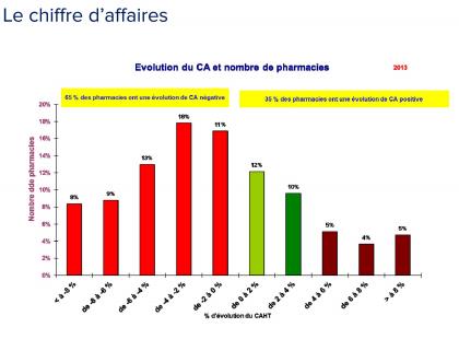 En 2013, la production de services des officines augmente de 27 %. Cela représente à la fois les contrats de coopération passés avec les laboratoires de médicaments génériques et les honoraires d’astreinte dont le montant moyen est de 1 600 euros.