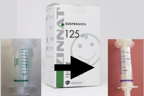 L’antibiotique Zinnat 125 mg/5 ml enfants et nourrissons (céfuroxime), granulés pour suspension buvable en flacon, a changé de dispositif d’administration. Depuis le 1er juin, la seringue doseuse graduée en kg est remplacée par une seringue graduée en ml.