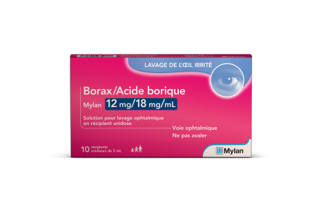 Principes actifs essentiels. Borax 12 mg/ml, acide borique 18 mg/ml.