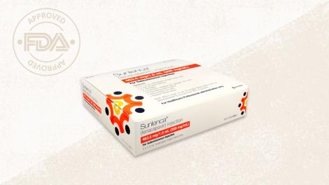 Sulenca se présente sous la forme de comprimé dosé à 300 mg et d’une solution injectable (voie sous-cutanée) à action prolongée dosée à 464 mg.