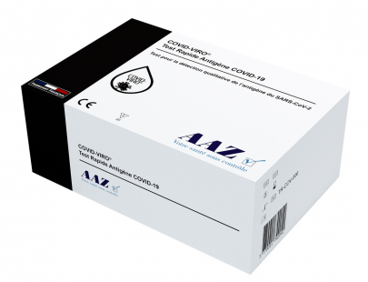 Le nouveau test rapide antigénique AAZ COVID-VIRO (résultat en 15 minutes) ressort à la fois avec la meilleure sensibilité et la meilleure spécificité de l’évaluation comparative rétrospective menée sur plus de 600 échantillons des performances de 6 tests antigéniques NP. Sa spécificité est de 100 % et sa sensibilité de 96,2 % (Ct ≤ 25) et 85.2 % (Ct ≤ 30). COVID-VIRO est le seul à répondre aux critères d’éligibilité de la HAS et de l’OMS (Ct ≤ 30), à savoir une spécificité minimale de 99 % et une sensibilité minimale de 80 %. Une boîte contient l'ensemble des composants pour réaliser 20 tests.